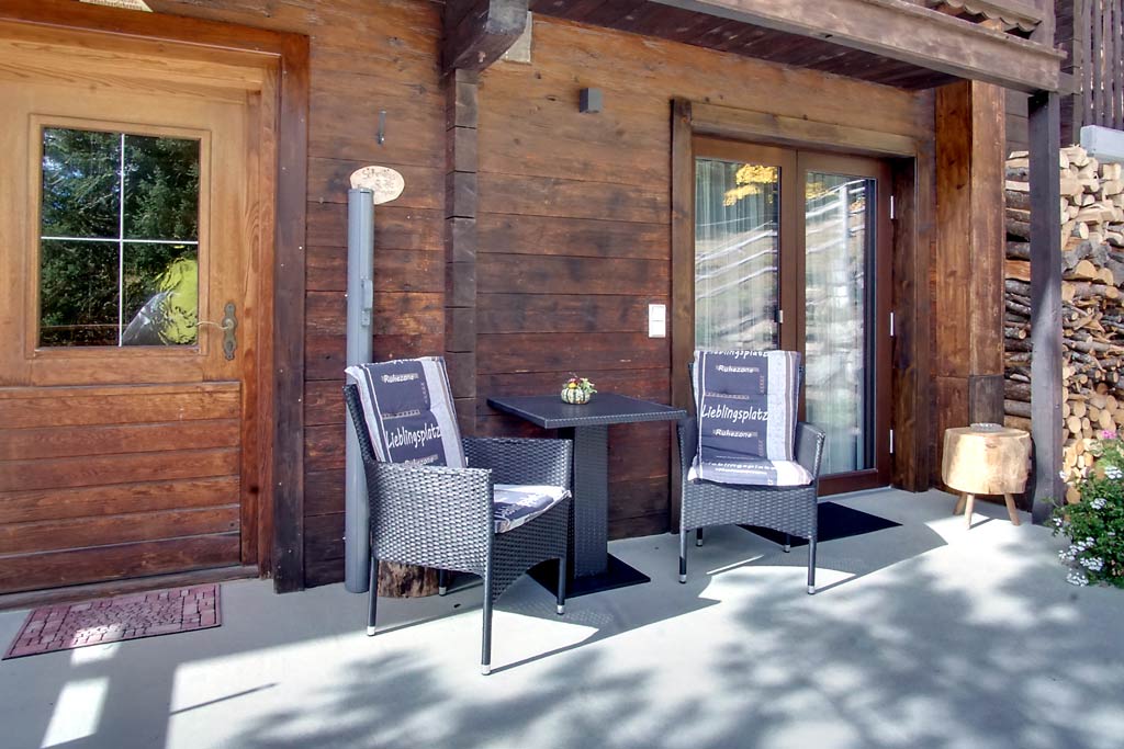 Ein Terrasse gleich neben dem Zimmer wo man Natur und die Morgensonne gleich schon genießen kann.